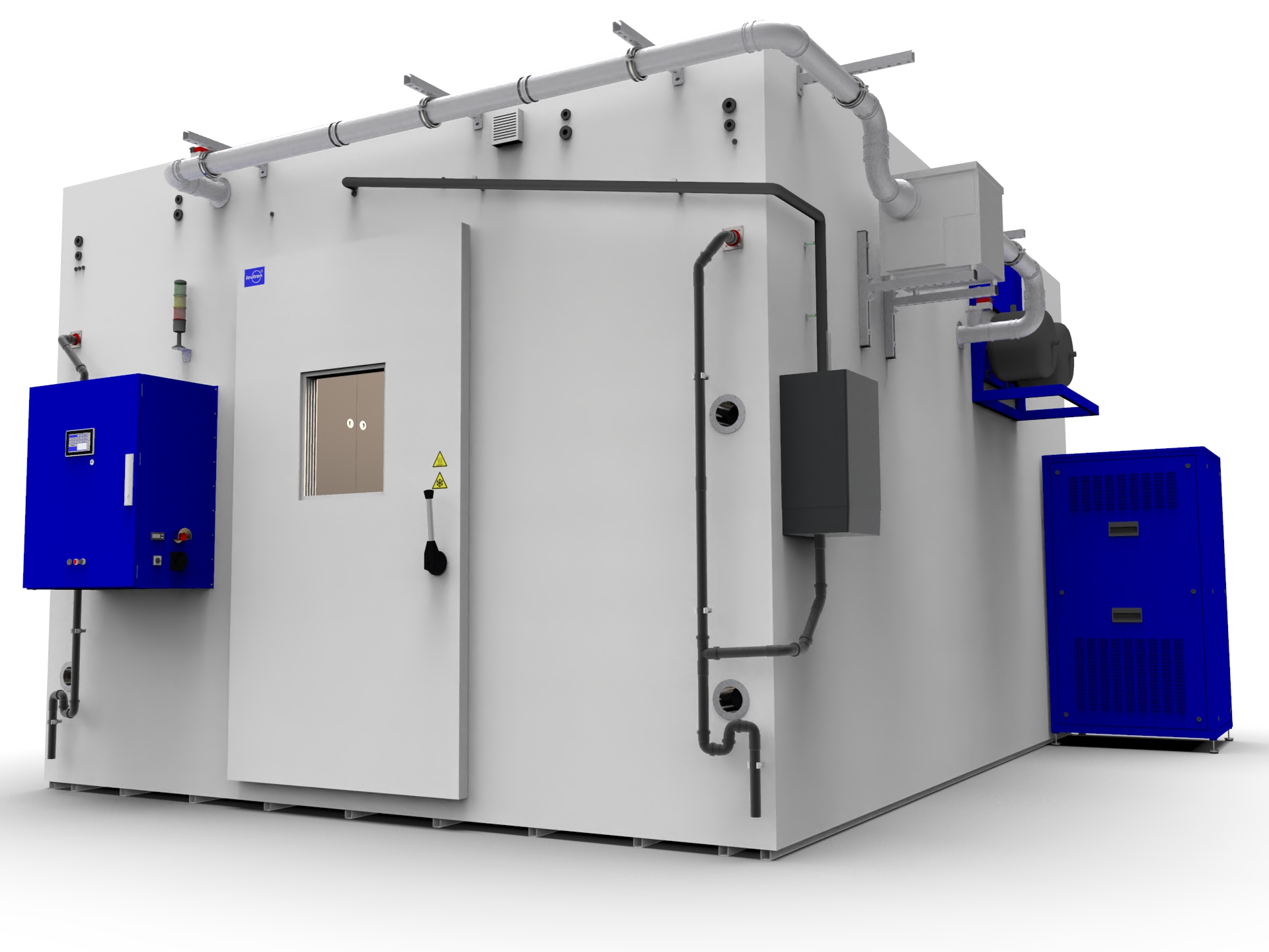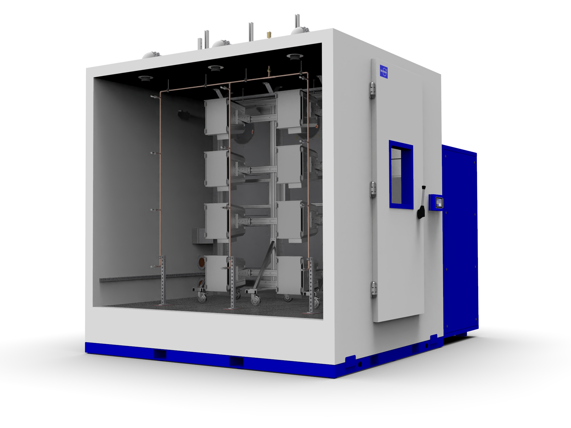 Our test cells are consistently implemented using a modular system. This design principle allows for precise customization of usable space size, geometry, and technical equipment to meet the respective testing requirements.